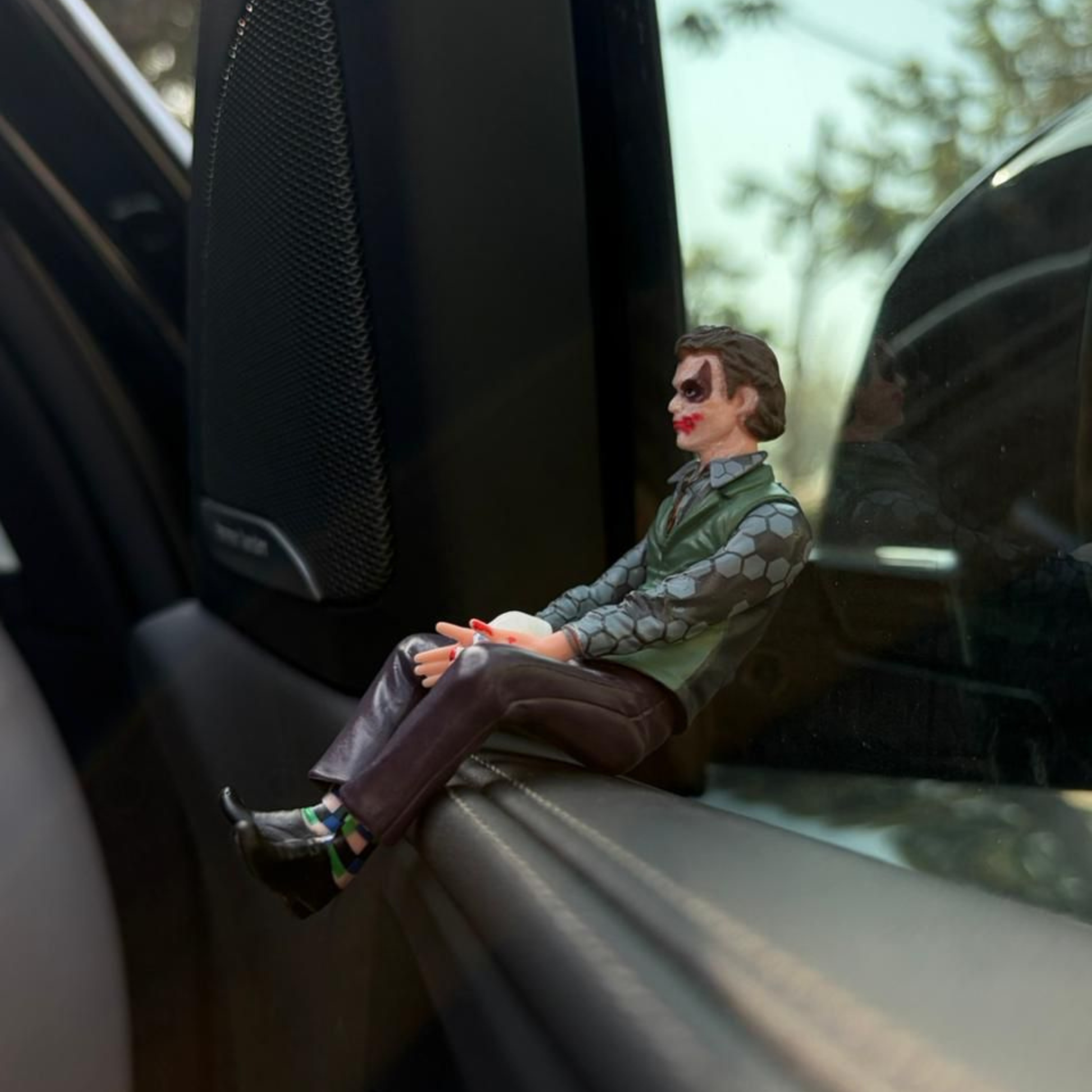 Drag-Auto Joker Action Figure with Mask | 10 cm (Small) Sitting Statue | Dashboard & Home Decor